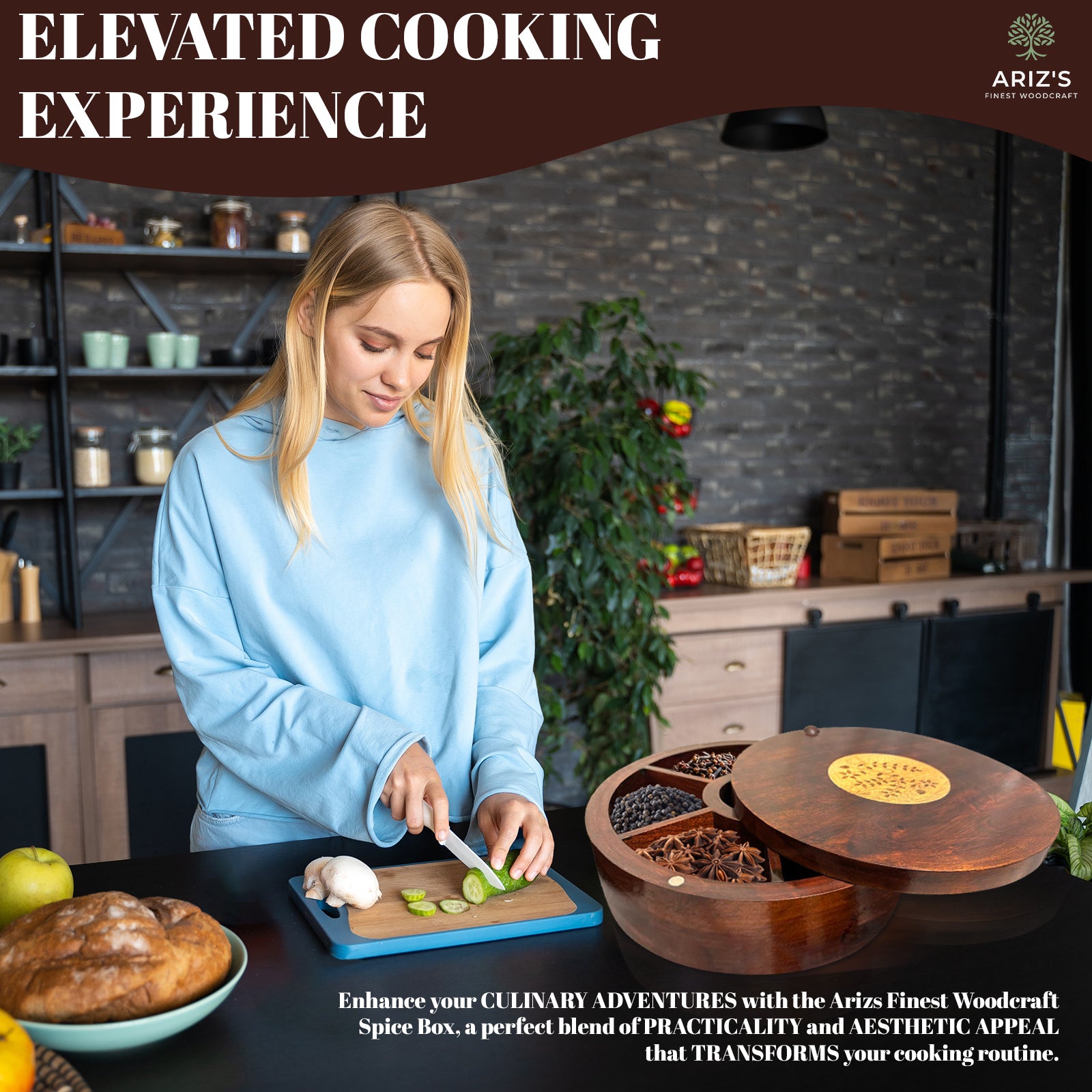 ELEVATED COOKING EXPERIENCE : Enhance your CULINARY ADVENTURES with the Arizs Finest Woodcraft Spice Box, a perfect blend of PRACTICALITY and AESTHETIC APPEAL that TRANSFORMS your cooking routine.